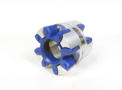 Design Description: A concentrically machined spacer with curved jaws. 2x elastomer segments press fit for zero backlash; standard versions are electrically isolating.